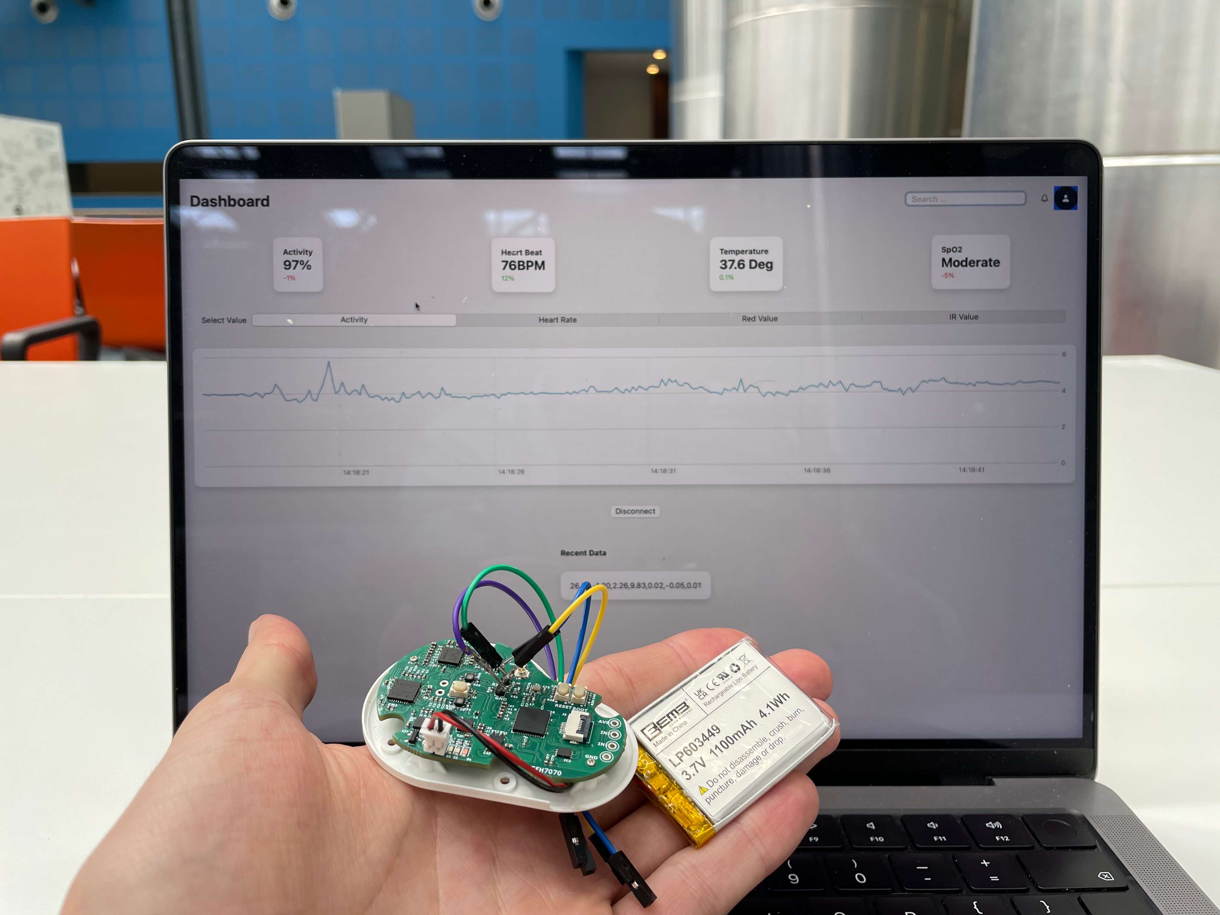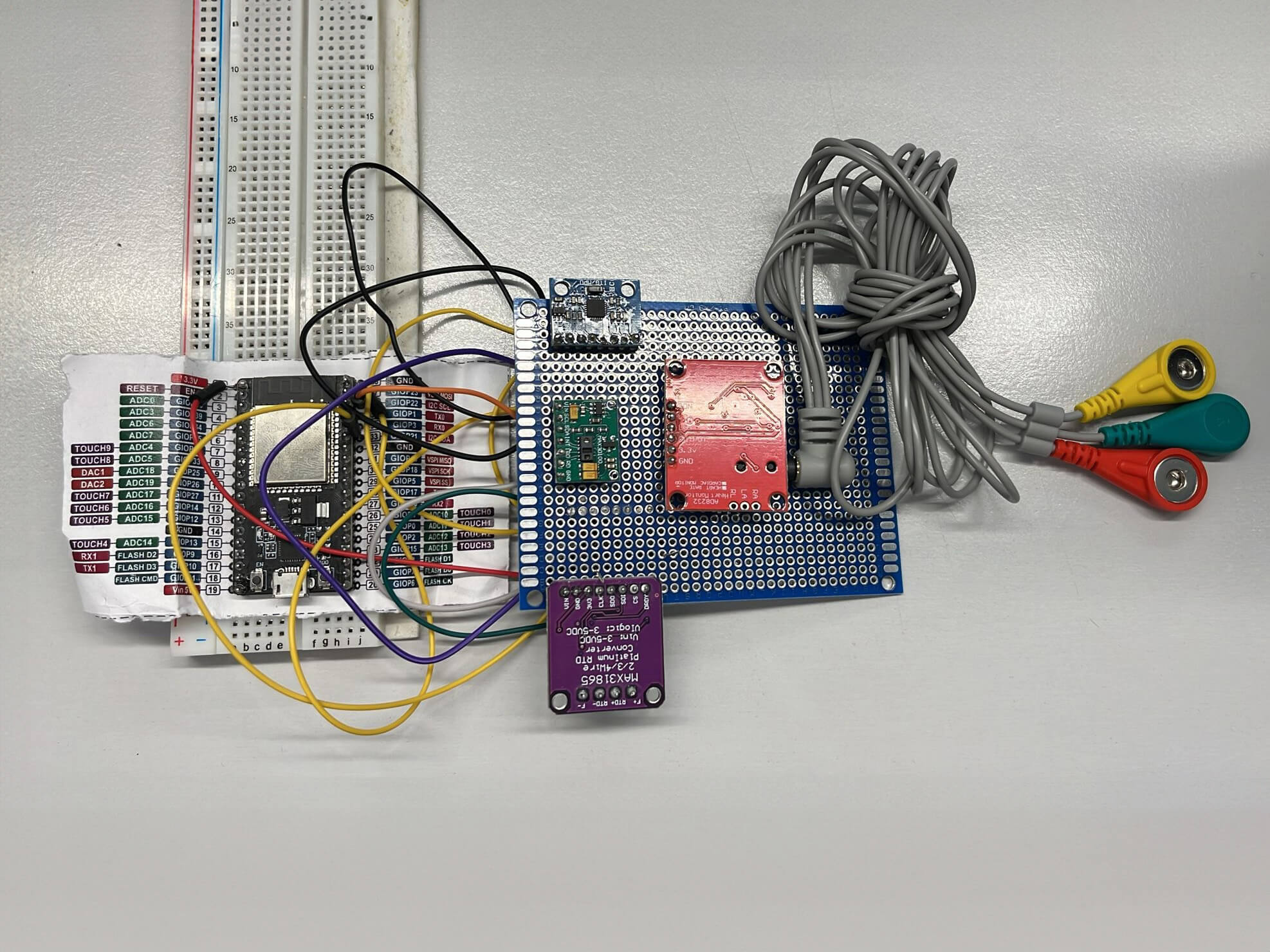 To ensure the device was functional, we focused on the necessary electronics and sensors to monitor patients' general well-being. This included an oximeter (SpO2), IMU (Accelerometer and Gyroscope), ECG (Heart rate), and RTD (Temperature). We started with an Arduino-based prototype and eventually transitioned to a PCB design.