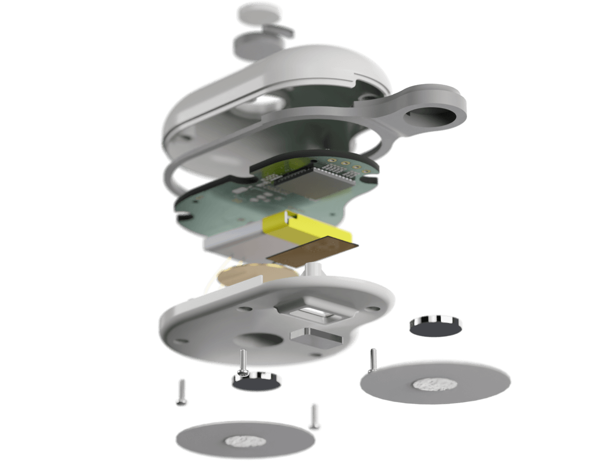 Since Biomeon is a reusable biosensor, durability was key. We combined a custom TPU gasket with a PP/ABS composite enclosure, avoiding glue and using screws to keep the interior accessible. This design allows the device to be reused up to 12 times, cutting CO2-equivalent emissions by over 90%. The only disposable parts are the ECG patches that stick to the user's body.